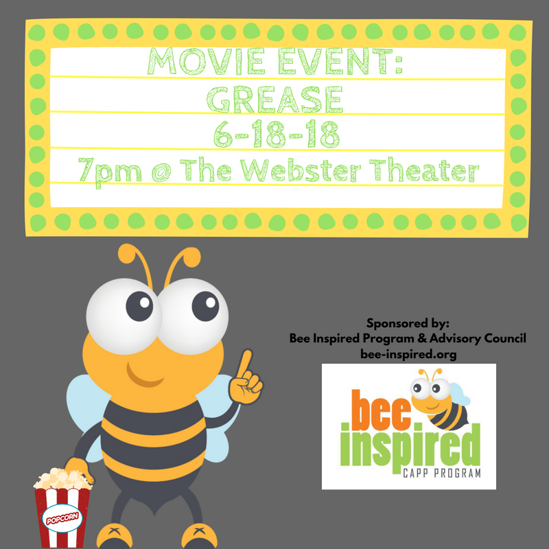 The Bee Inspired Program Advisory Council invites the public to attend this free community showing of “Grease” as we wrap-up activities from May’s Teen Empowerment Month, and the summer break gets in full-swing. This is the time of year when risky behaviors increase for youth. It is so vitally important for youth and adults to increase communication. The discussion questions provide an opportunity to do just that. For families to TALK. The movie provides many messages and themes that are worth discussing. The admission will be FREE, with approximately 200+ seats available on first come first serve basis. The concession stand will be open, and patrons will be responsible for purchasing their own snacks. For questions or information on the movie event or the Bee Inspired Program, individuals may buzz over to our social media accounts, or contact the Bee Inspired CAPP Program Coordinator at 515.602.6371 (ext. 4) or beeinspiredcappprogram@gmail.com.